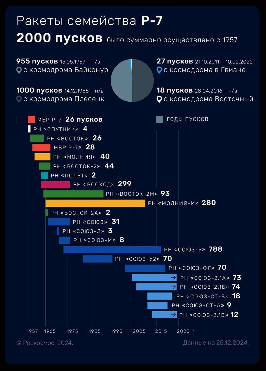 ▪️ Плесецк — 1 000 пусков (с 14.12.1965 по н/в);