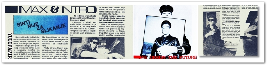 Блуждая по просторам "интернетов" случайно наткнулся в YouTube на музыку, которая показалась мне очень интересной. И так как я неравнодушен ко всякой электронной музыке особенно 80-х годов (годов эпохи её расцвета) и на фоне того что всё больше и больше людей вспоминают электронную музыку своей молодости и в нашей стране, бывшем СССР, то предлагаю Вашему вниманию заценить музыку из некогда братской бывшей Социалистической Федеративной Республики Югославия. Что-то в ней есть такое хорошее!