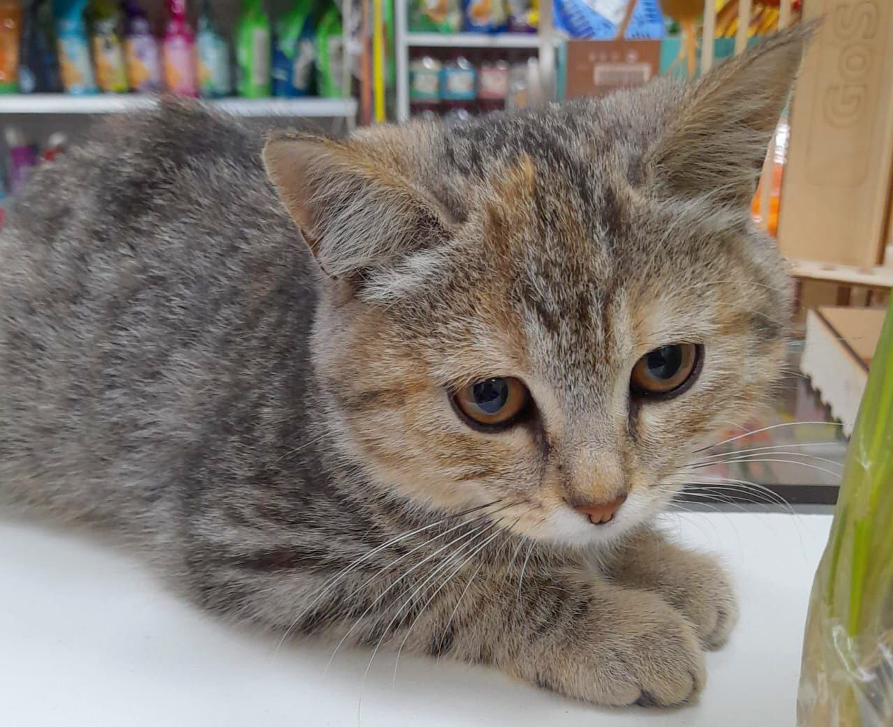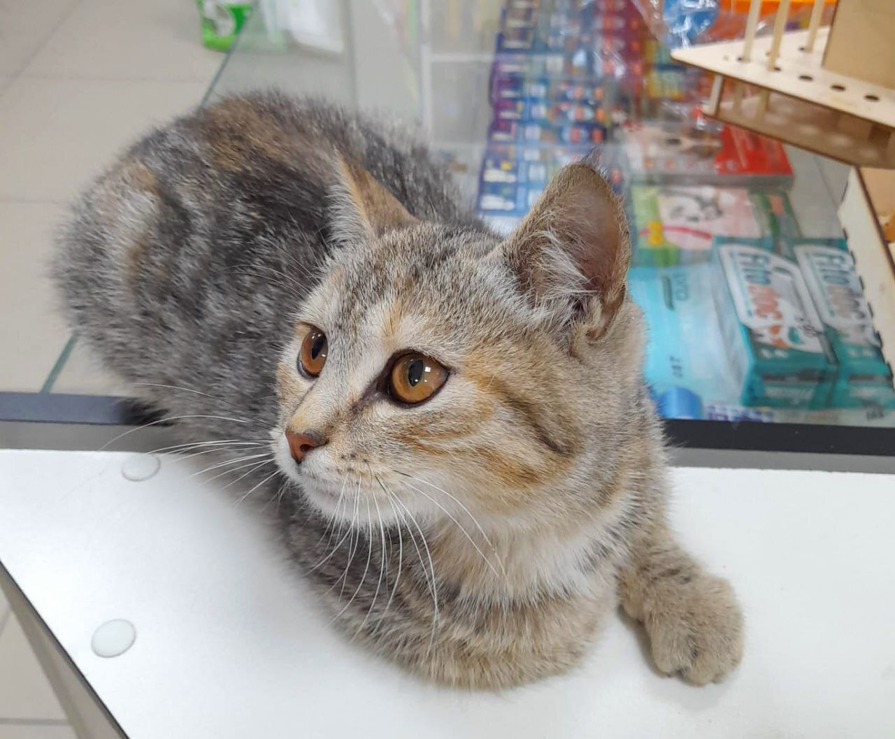 Верочка - кошечка очень славная, мягкая по характеру, спокойная и уживчивая, цвета табби с оранжевыми пятнышками, так что смело говорим - трехцветочка!