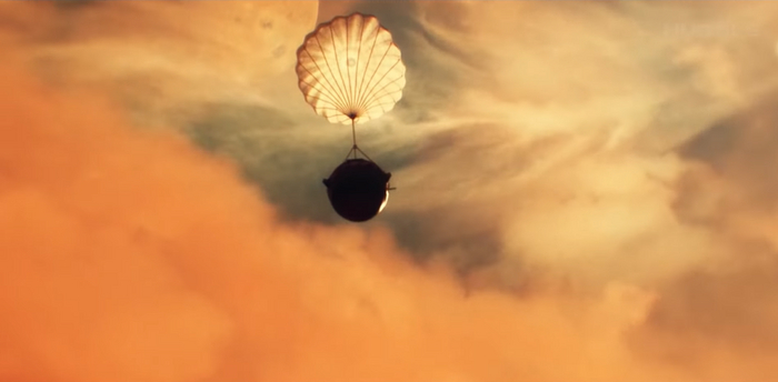 Это был волнующий момент для ученых: "Галилео" остался цел и раскрыл парашют. Кадр с канала Hubble.
