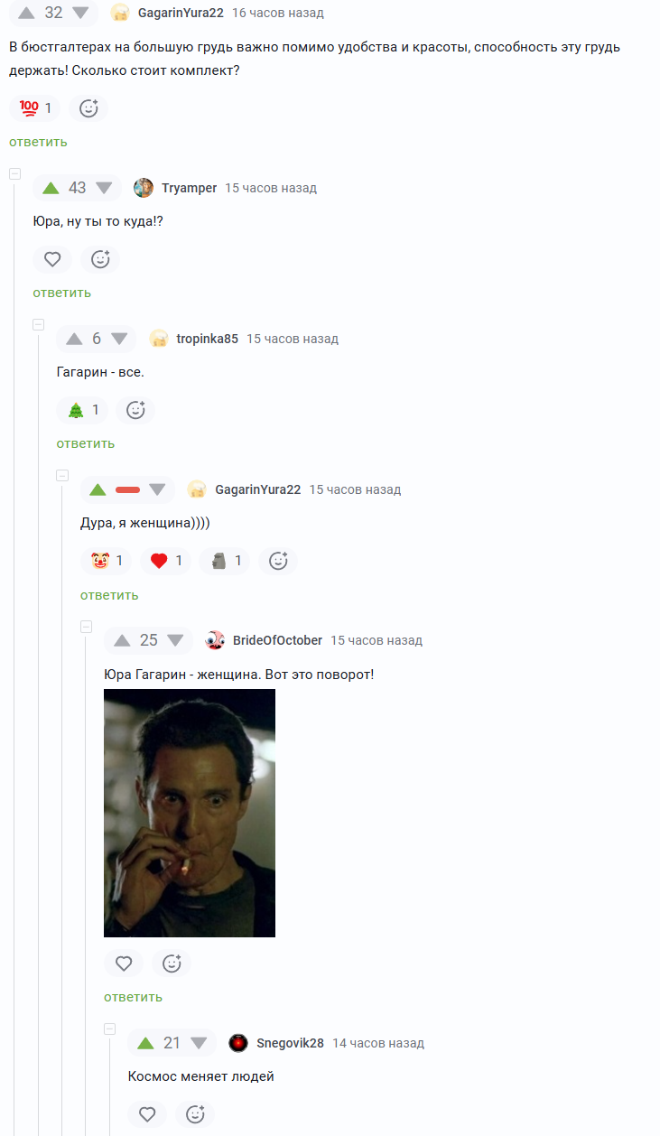 44 Spectre666 Наука Юра, мы все пошили 27 дней назад #comment_380573467 Юрий Гагарин Бюстгальтер Космос 22 2 Ещё 0