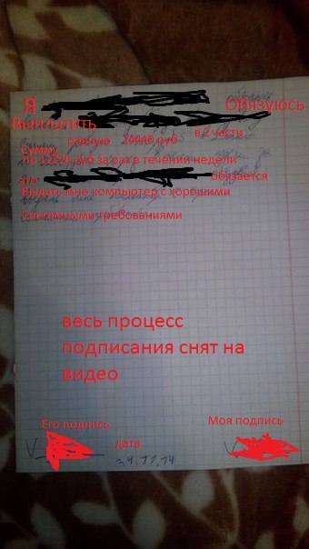 Я брал с него расписку и снимал это на видео, фото документа в комментариях.