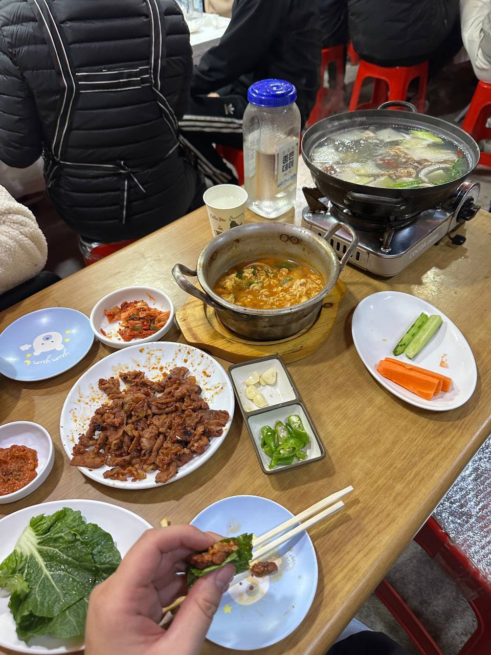 *Кимчи конечно же + чеснок, перец, огурец и морковь, все овощи свежие. Мы только перец не ели.