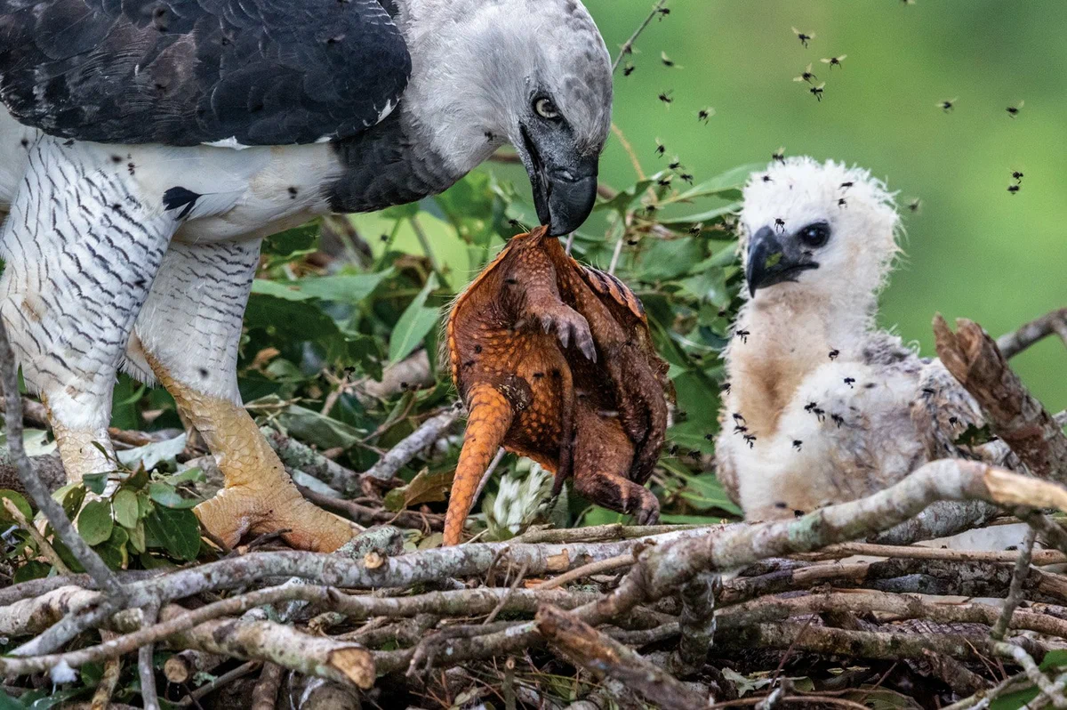 Да, отношения в гнезде южноамериканских гарпий полны любви и гармонии. Правда, младшего ребёнка это не касается. Птенец, вылупившийся первым, получает всё. Второй малыш для родителей как запаска в машине на случай, если с первым что-то случится. Младшему только и остаётся надеяться, что братик или сестричка погибнет раньше.