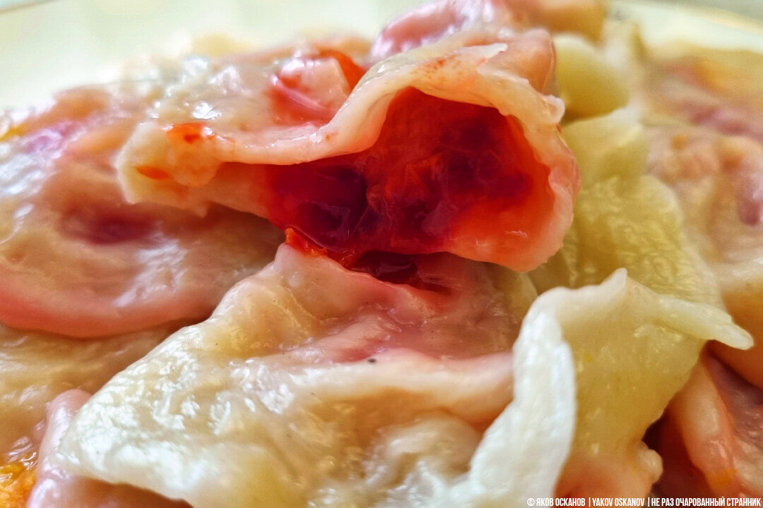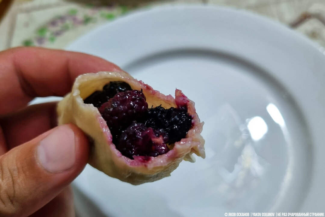Вареники с начинкой из тютины (так у нас называют шелковицу), напротив – приторно сладкие, и лично мне не хватает кислинки.