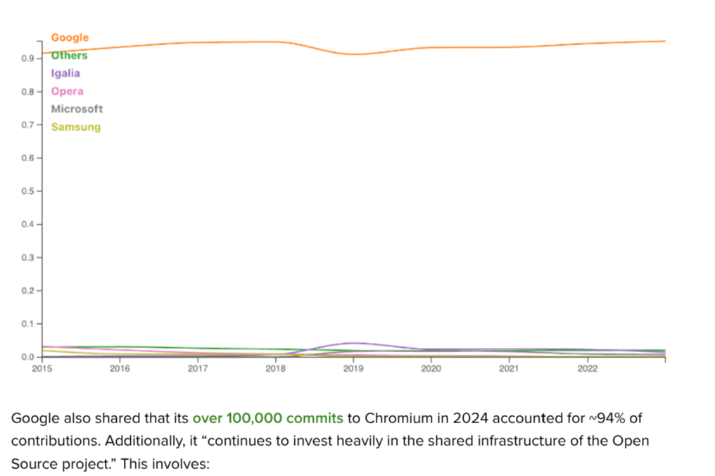 на приложенной картинке - фрагмент первой попавшайся статьи про вклад разных компаний в хромиум. 6% по состояни на 2024 год взяли на себя гиганты "от яндекса до оперы".