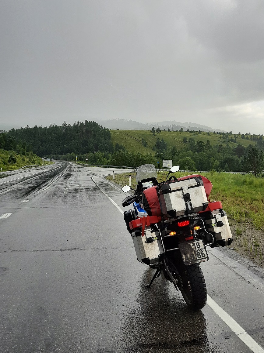 Выехали из Улан-Уде вдвоем с Вадимом на К1200 БМВ. Перекусив в 100 км от города в придорожной кафешке, погнал вперед один в своем ритме. Часа через 2 остановился на второй завтрак ждать Вадима. Прождав около часа поехал дальше один.