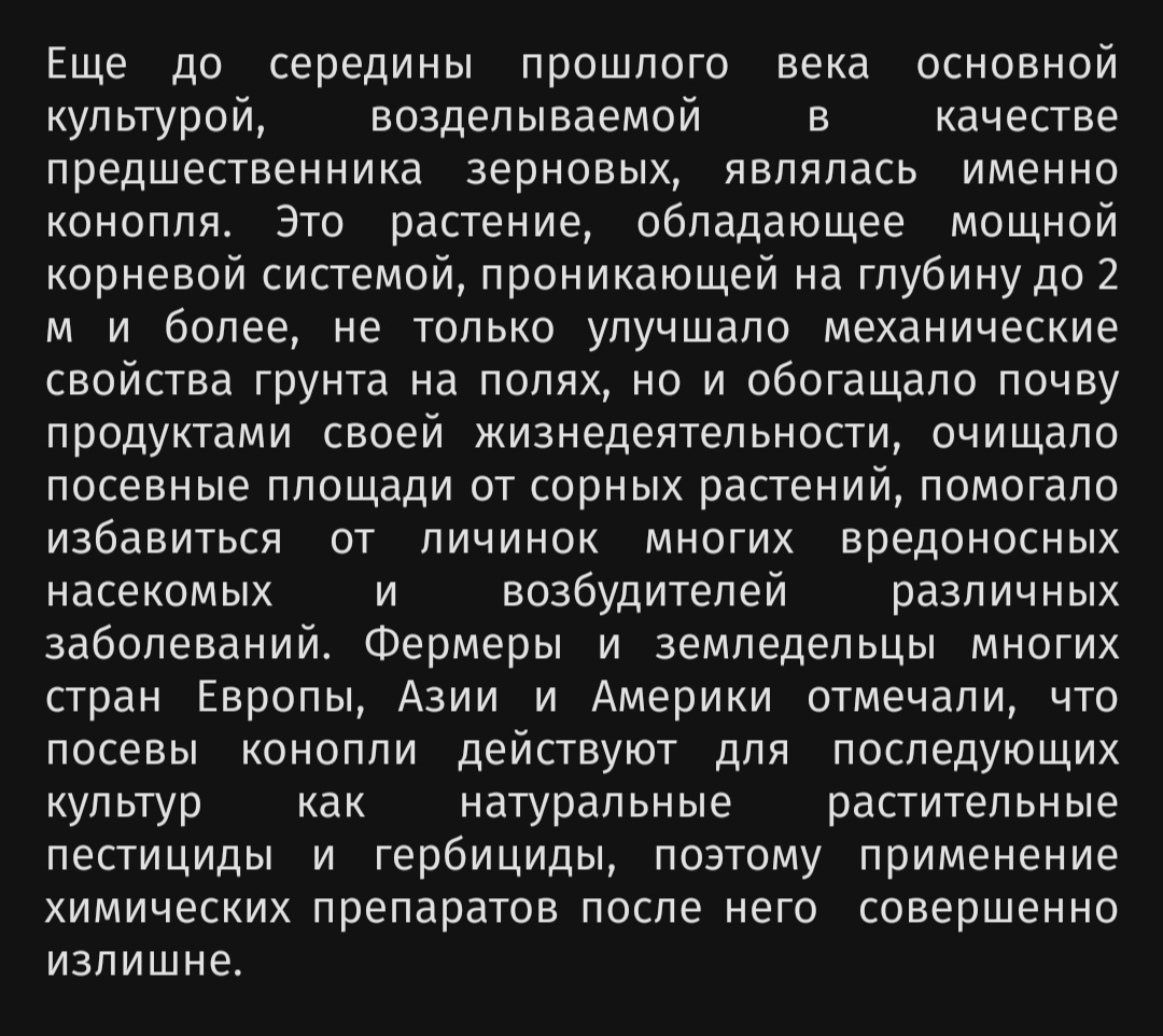конопля лечит огромное количество болезней. так-же она восстанавливает почву и отгоняет паразитов.