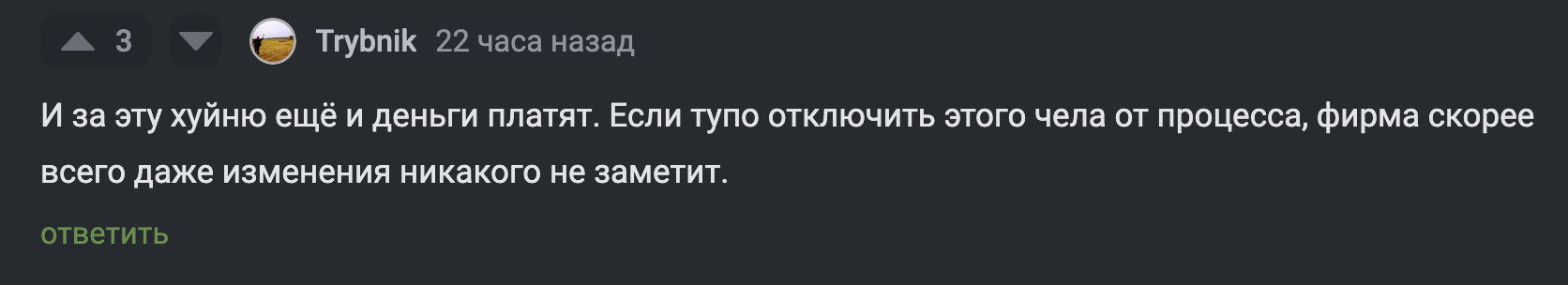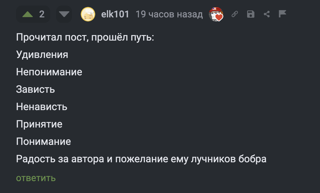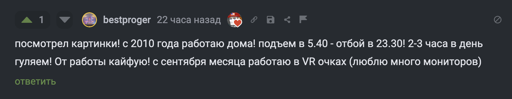 Спасибо за внимание, думаю этот пост уже не наберет много лайков, так как тут мало картинок :-) Прочитал все ваши коменты из поста, лучшие привожу ниже.