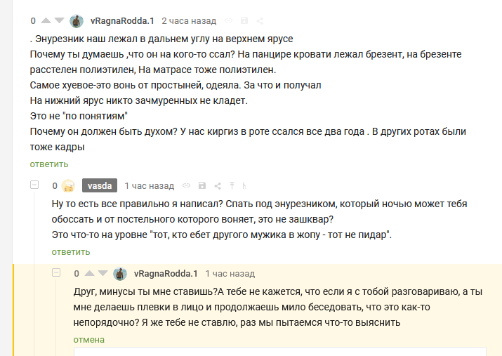 То есть дух с верхней полки будет обоссывать деда на нижней? И это не зашквар, а поменяться полками - зашквар?