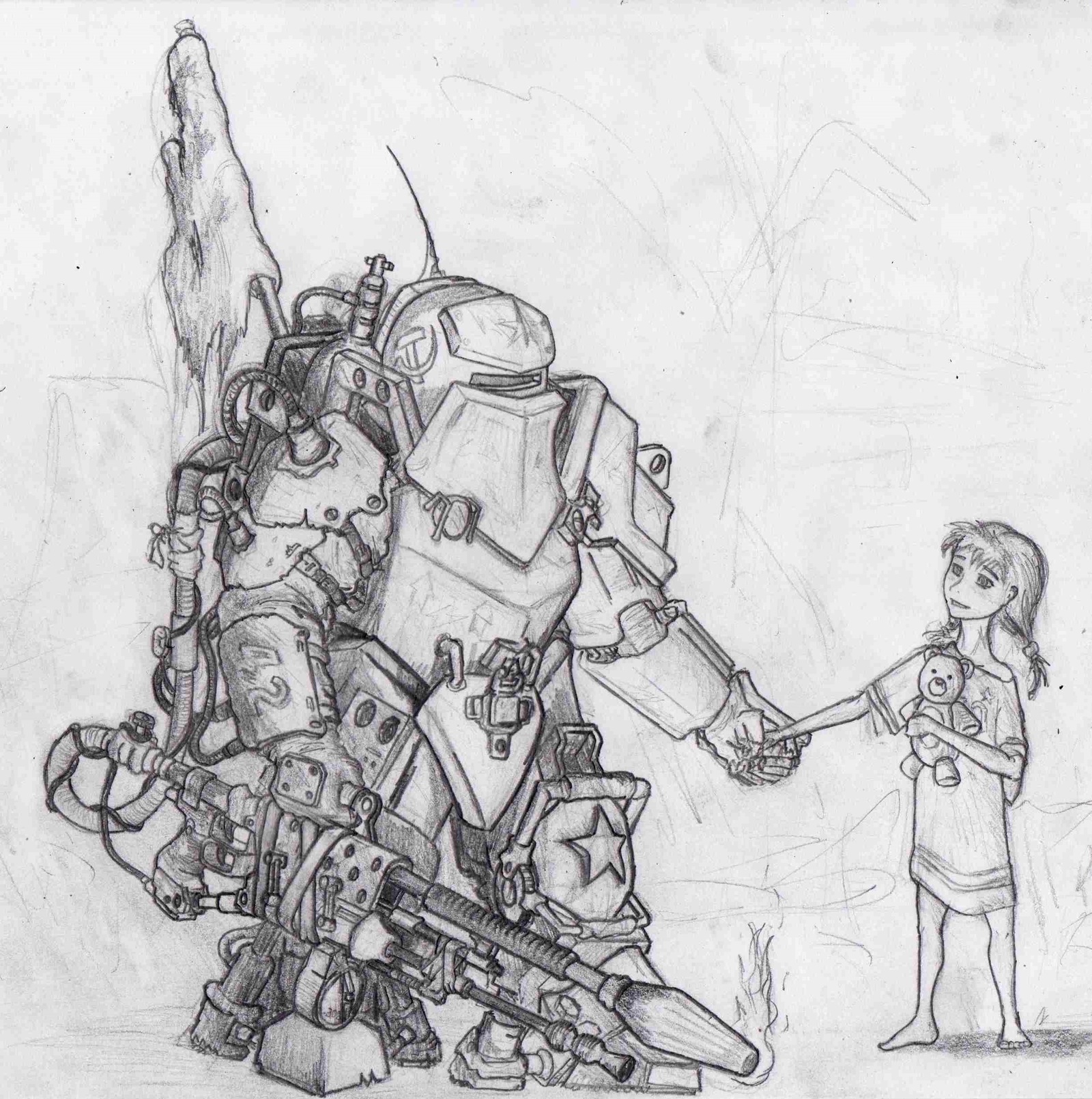 Вдохновлялся Большими Папочками из биошока и силовой бронёй из четвертого фоллаута, но основная идея исходит от ощущений при надевании сварочного костюма и маски на работе