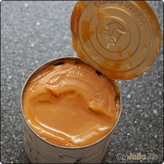 ой, а мы такую делали во время сплава, взяли ведро, запихали сгущенку, залили водой, и варили на костре