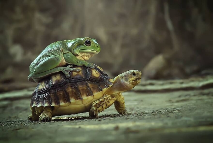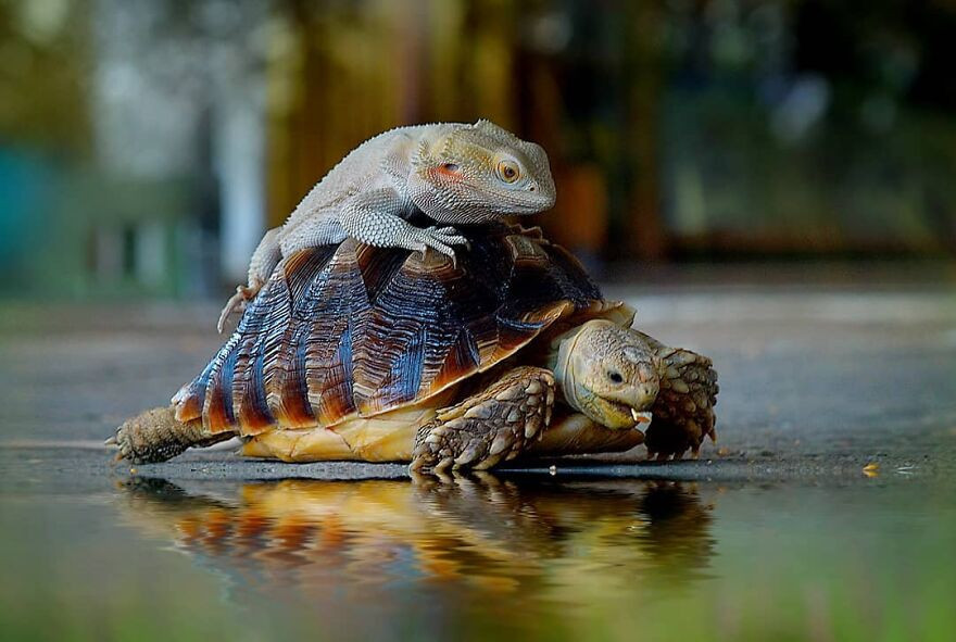 Его снимки — это интересные примеры взаимодействия животных между собой и сцены из их не менее занимательной жизни. А уж как хладнокровные умеют наслаждаться солнышком! Только взгляните!