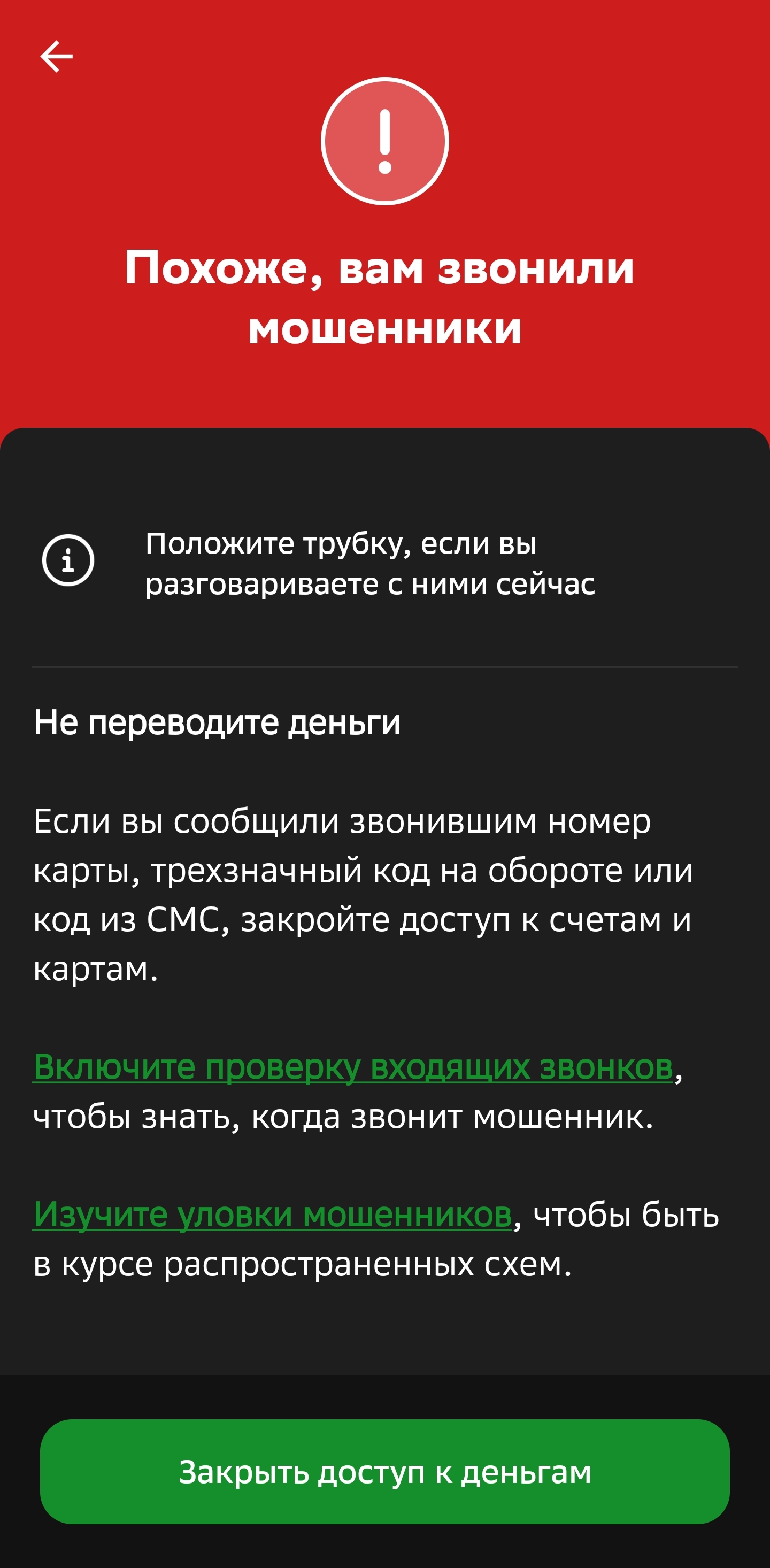 Проверяю все входящие звонки вручную через сервис https://www.sberbank.ru/ru/person/cybersecurity/antifraud