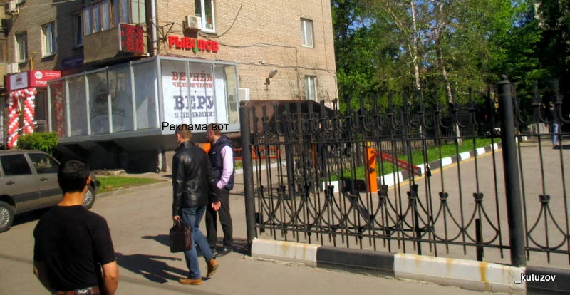 В Москве лет шесть назад на Садовом кольце такое висело в районе Сущевского вала. В прошлом году в Воронеже веру возвращали, в позапрошлом в Смоленске. Теперь и до Оренбурга добралось.
