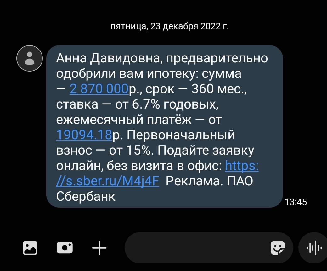 7 KaktusMnenie Забота от Сбера 2 года назад ЗП у меня 26000, другого дохода, кроме бабушкиных "на сладости", нету. Сбер решил что я буду не против платить по 20.000 каждый месяц в течение 30 лет. П.С. На днях оформила карту Тинькоф. Может, Сбер почувствовал?)) [моё] Забота Банк Сбербанк Скриншот Ещё 0