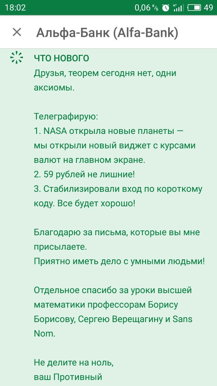 9 MastahKilla Заботливый разработчик с юморком 8 лет назад [моё] Альфа-Банк Приложение Разработчики