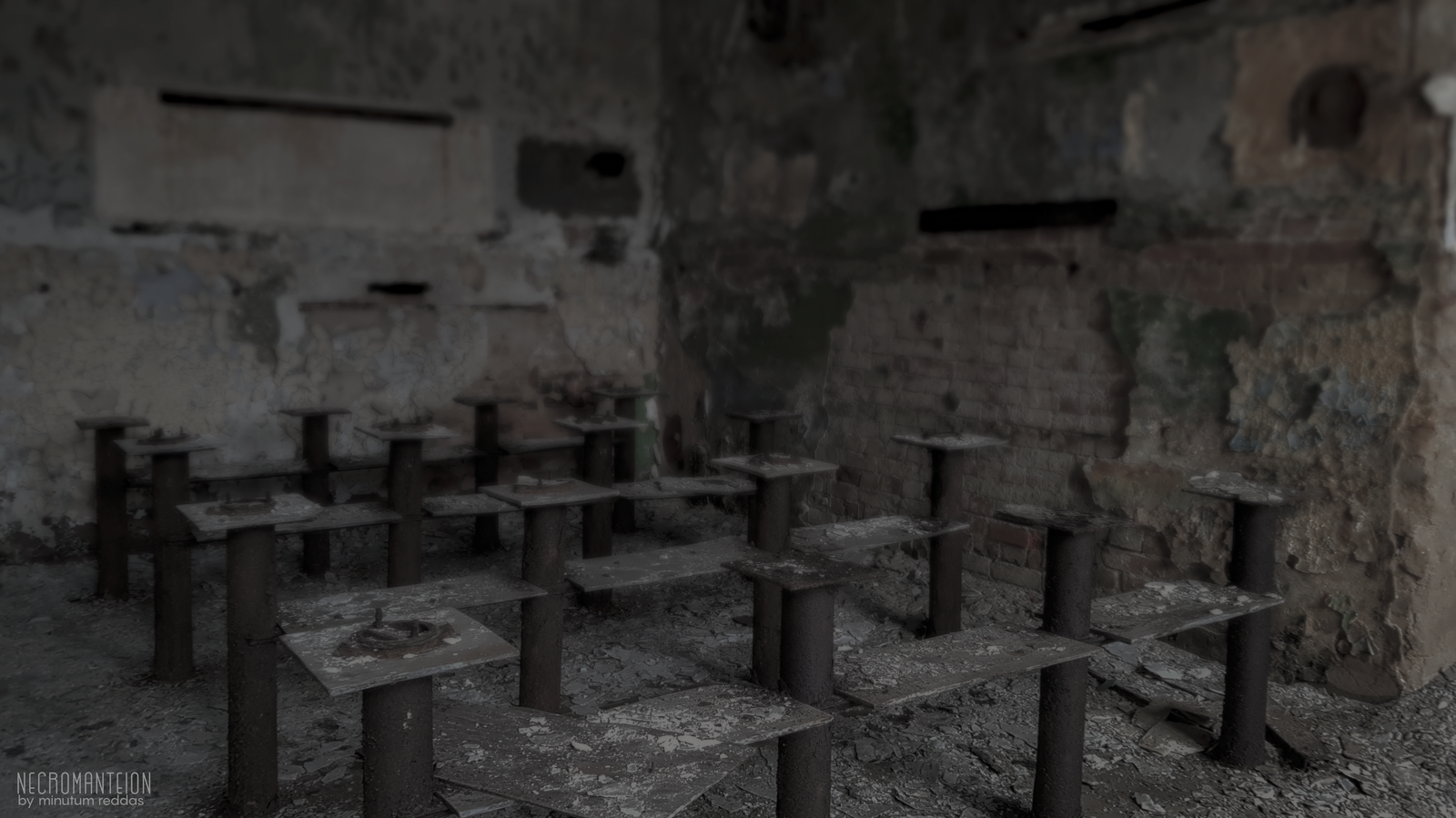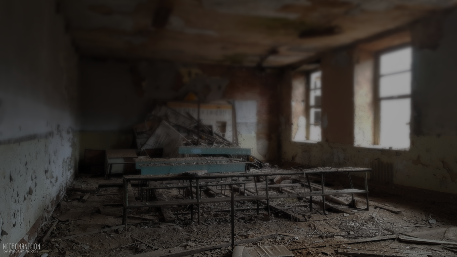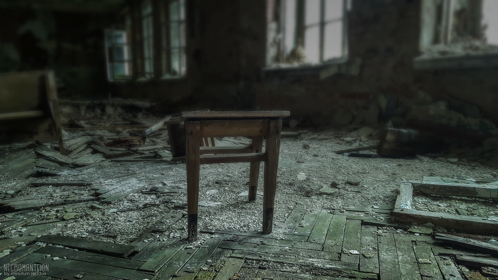 Особенностью этой заброшки был мох; паразитарная растительность на здании – как витилиго у человека, я считаю. Плесень расцветает на отсыревшей штукатурке самая разнообразная, от махровой светлой, похожей на ягель, до густой фиолетовой, напоминающей налившийся синяк, отдающий чернотой, или маргаритки, насыщенные и пестрые. Причиной тому приятный сумрак и влажность среды: благодатный климат, установленный близостью моря. Зелень буйствует на потолке, пожирает половицы, перекидывается, неспешно и неуклонно, на рассохшиеся парты, пористой структурой вбирающие в себя, подобно губке, капли дождя.