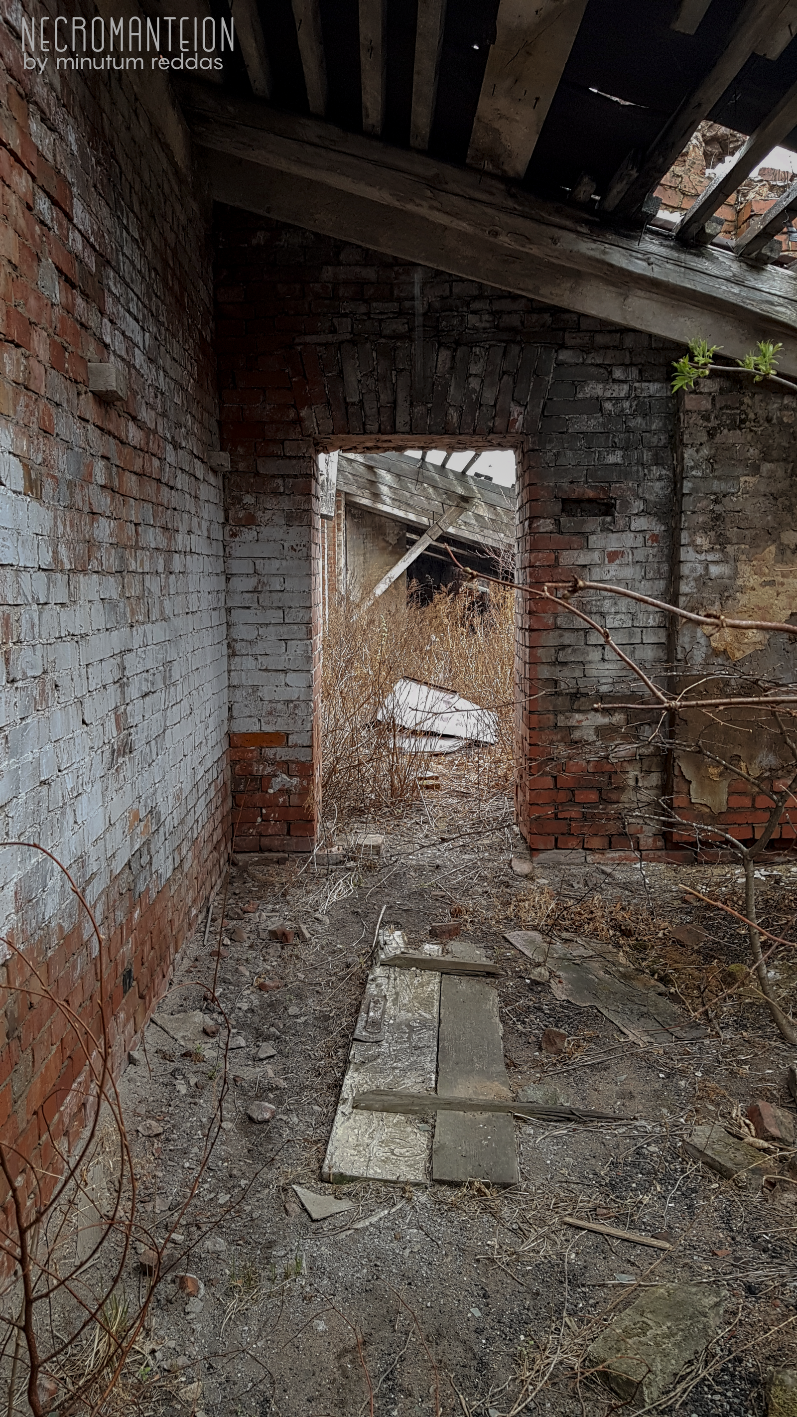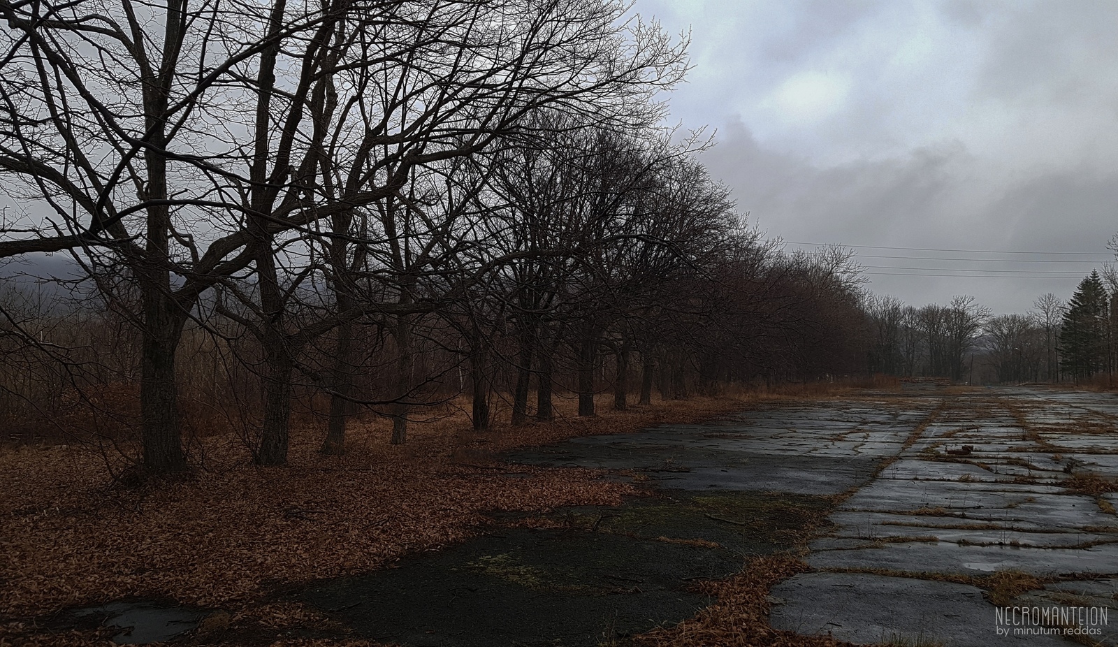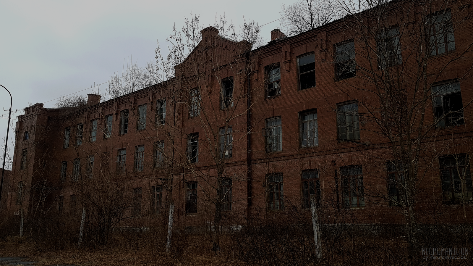Живописный абандон, злачный на интересности, самое главное – атмосферный. Большую роль сыграла погода: пасмурное небо с ярко выраженными, очерченными густой серостью облаками, ненавязчивая морось – та, что слишком мелкая для порчи кадра, но достаточная, чтобы прибить к земле пыль и навязать меланхолию; вкупе с изогнутыми деревьями, почки на ветвях которых еще не налились, и вечной палой листвой, оголившейся под жухлым будылем, картина представляется удивительно осенней.