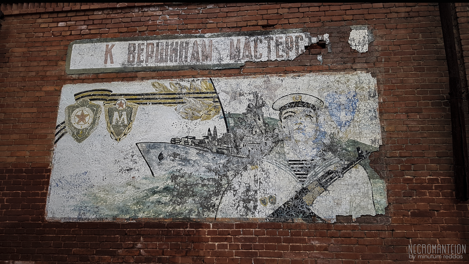 Письма и сочинения, начертанные от руки, надежно скрытые от вездесущего Времени по шкафчикам уцелевших тумб. Я не вчитывался — чужие откровения должны остаться негласными, — но держать в руках эту бумагу, прикоснуться к чужим переживаниям было приятно. В одной из комнат нашел шинель – черную, потому как военно-морская, и с одним рядом застежек, ибо матросская, - рисунок на пуговицах которой забился пылью. Взял одну на память (:
