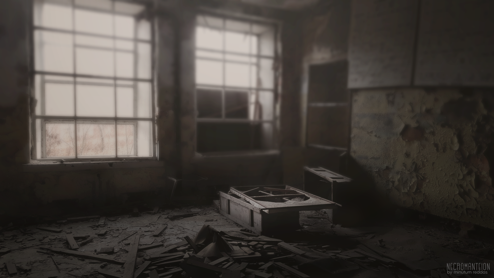Сумрачно. На разбитый в труху паркет коридоров ложатся квадраты света, пробивающегося сквозь окна в кабинетах. Двери нараспашку, большинство держатся на одной петле, но они есть, не распилены на дрова местными варварами суетливыми гражданами и предприимчивыми дачниками. В фойе и на лестничной клетке абсолютное безмолвие уступает ветру, воющему в щелях.