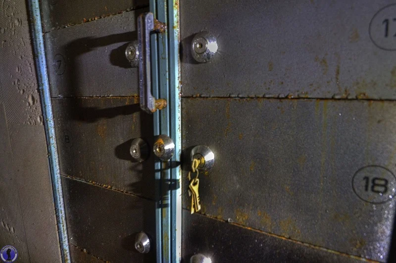 Закрытые намертво сейфовые двери в отсеки хранилищ. В каждой такой двери врезан замок на шесть ключей, без которых невозможно провернуть штурвал.