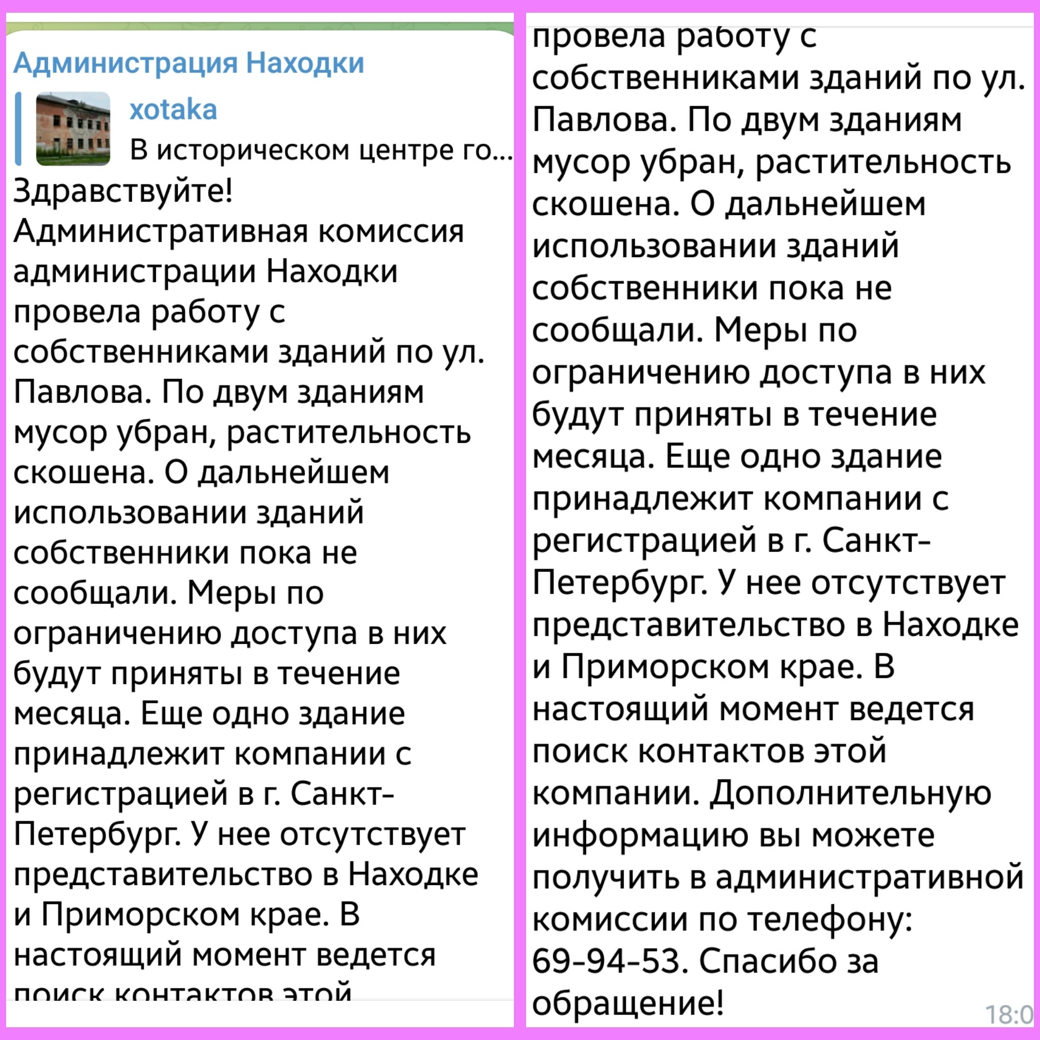 Некоторое время назад я писал о комплексе заброшенных зданий в историческом центре города Находка, по вопросу состояния, содержания и их дальнейшей судьбы - я обратился в Администрацию города.