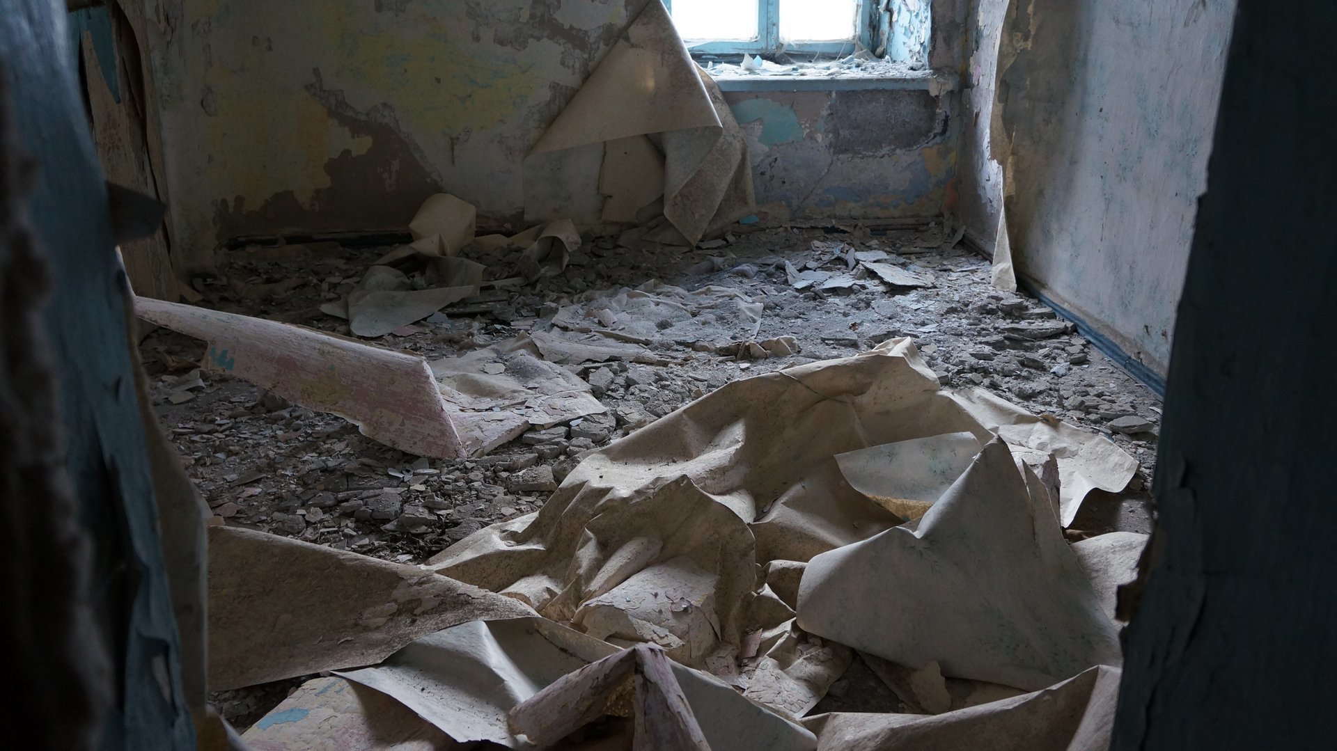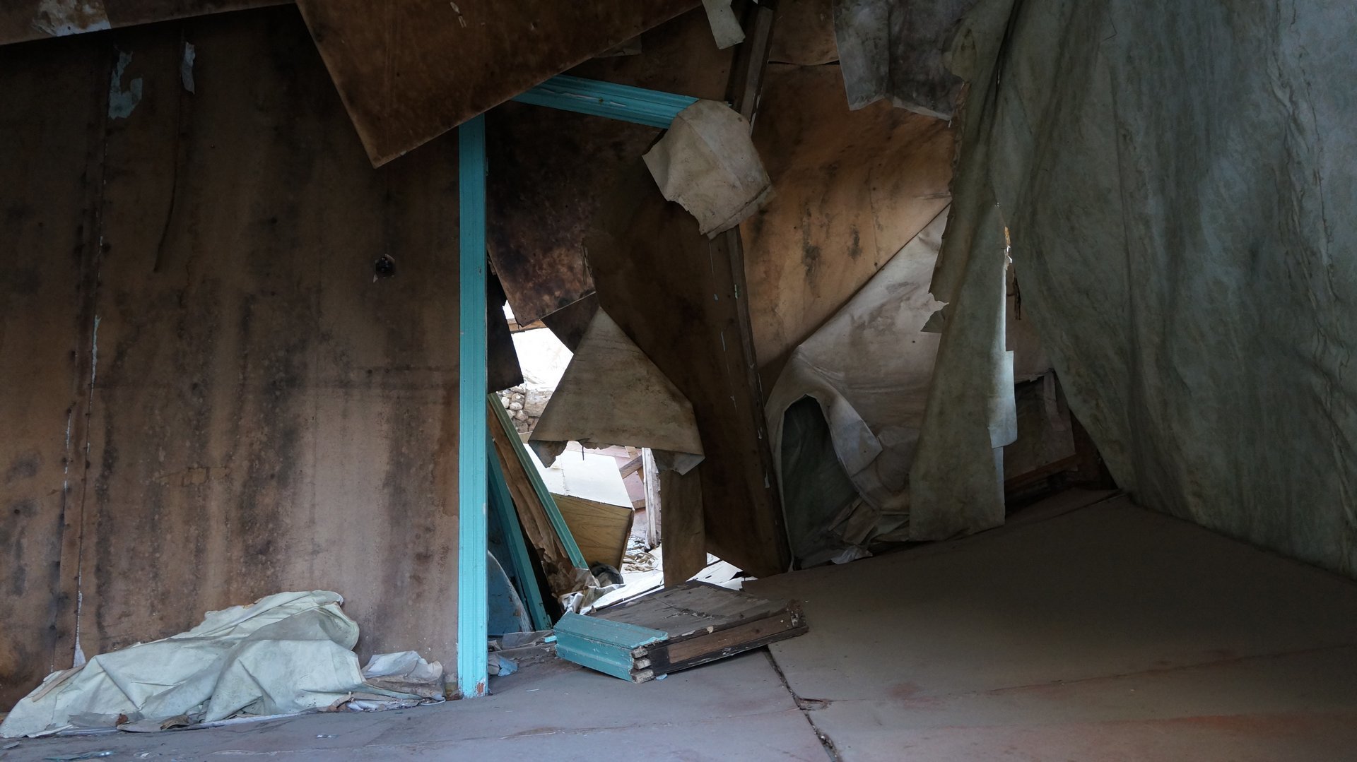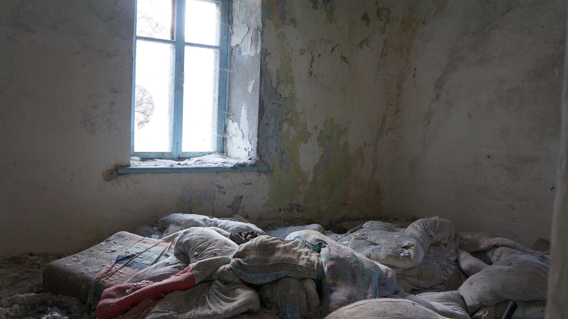 От лагеря мало что осталось, кучка прогнивших матрасов, да в окнах кое-где есть целые рамы и стёкла. Всю мебель давно растащили (вообще, мы приехали туда в поисках целого стула или двух, но всё уже было утащено до нас)