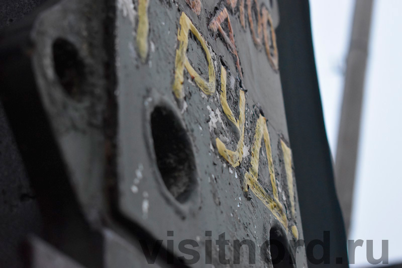 Я видел эту надпись на фото в интернете еще до своей поездки в Иультин и все не мог понять, как же она так хорошо сохранилась, обычная краска давно бы облезла. Подойдя вплотную, я все понял, сейчас поймете и вы, смотрите внимательней.