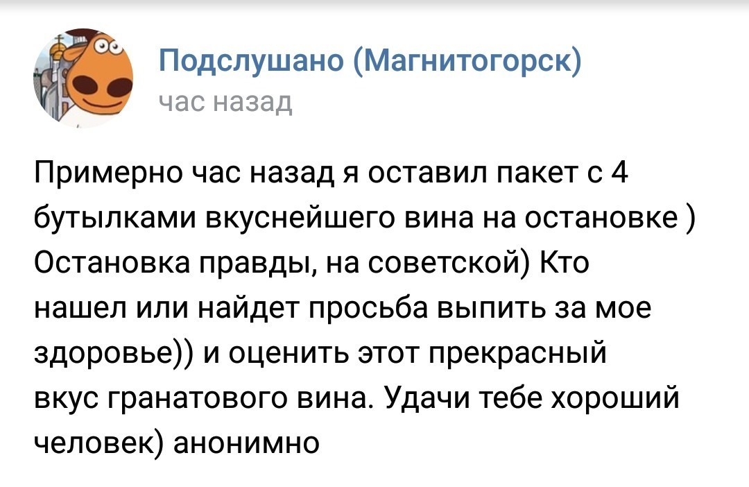 Примерно полчаса назад я по глупости забыл пакет с 4 бутылками вкуснейшего гранатового вина.