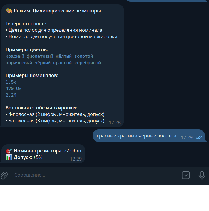 А я запилил себе Resistor Code Bot - умного Telegram бота, который за секунды определит номинал любого резистора! 🤖