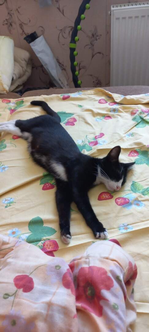 Освоилась, не отходит ни на шаг, периодически включая опцию мурлыканья. Назвали Дусей.