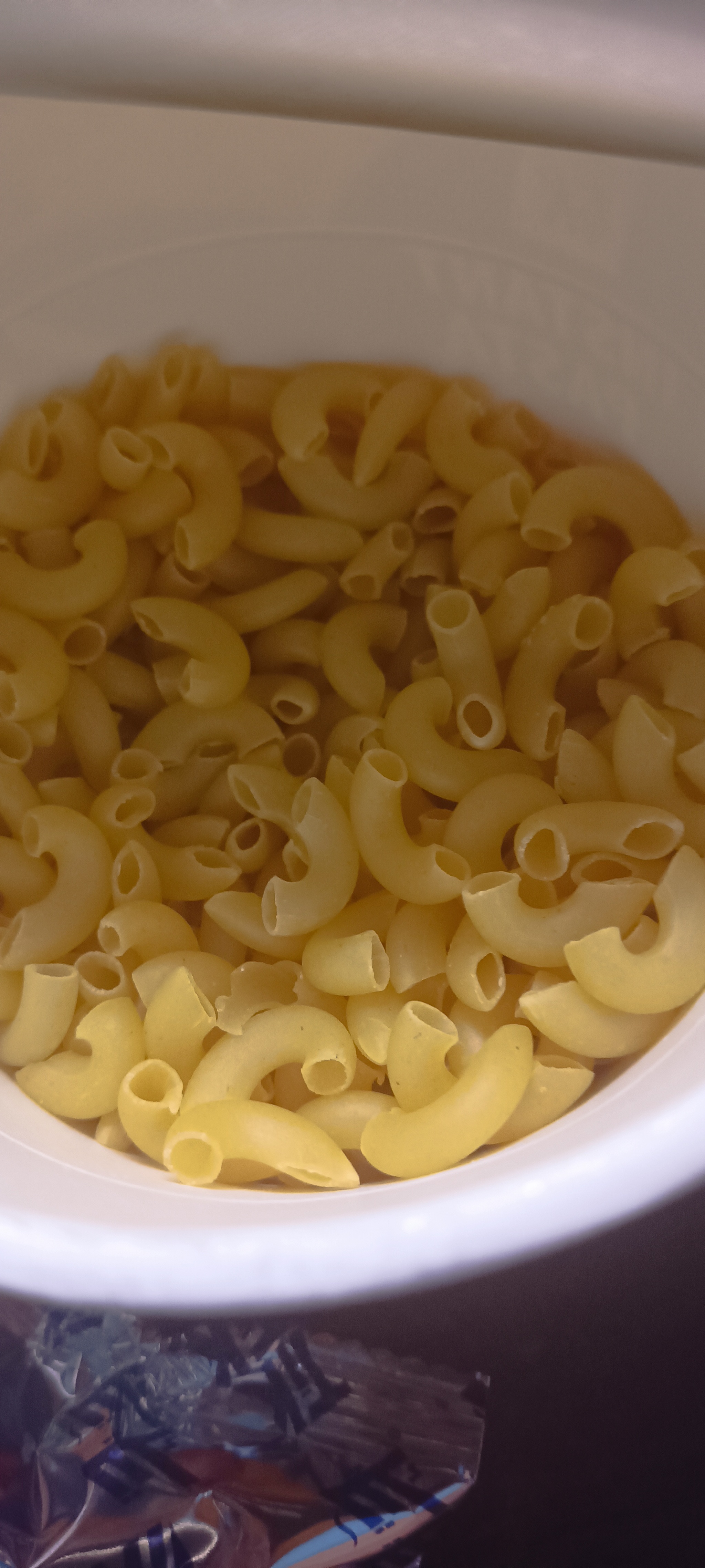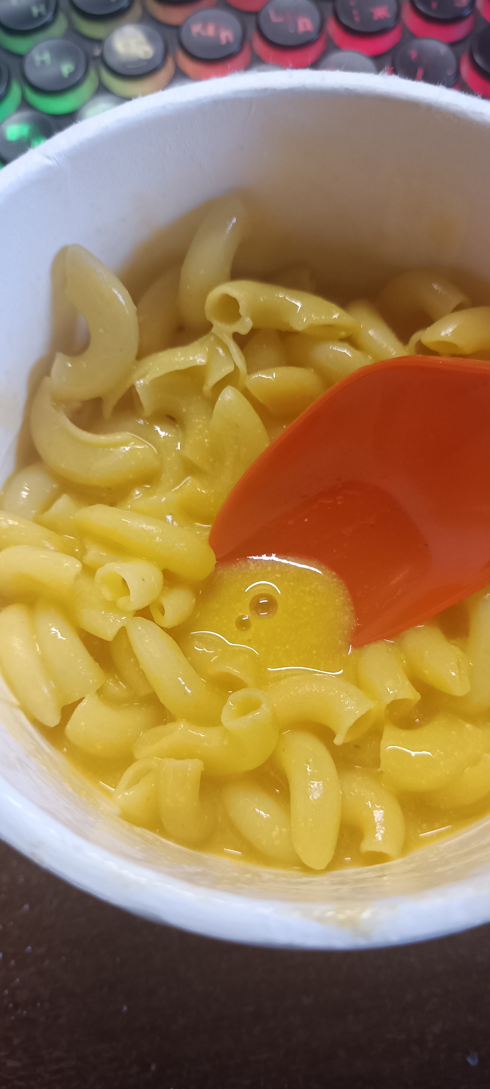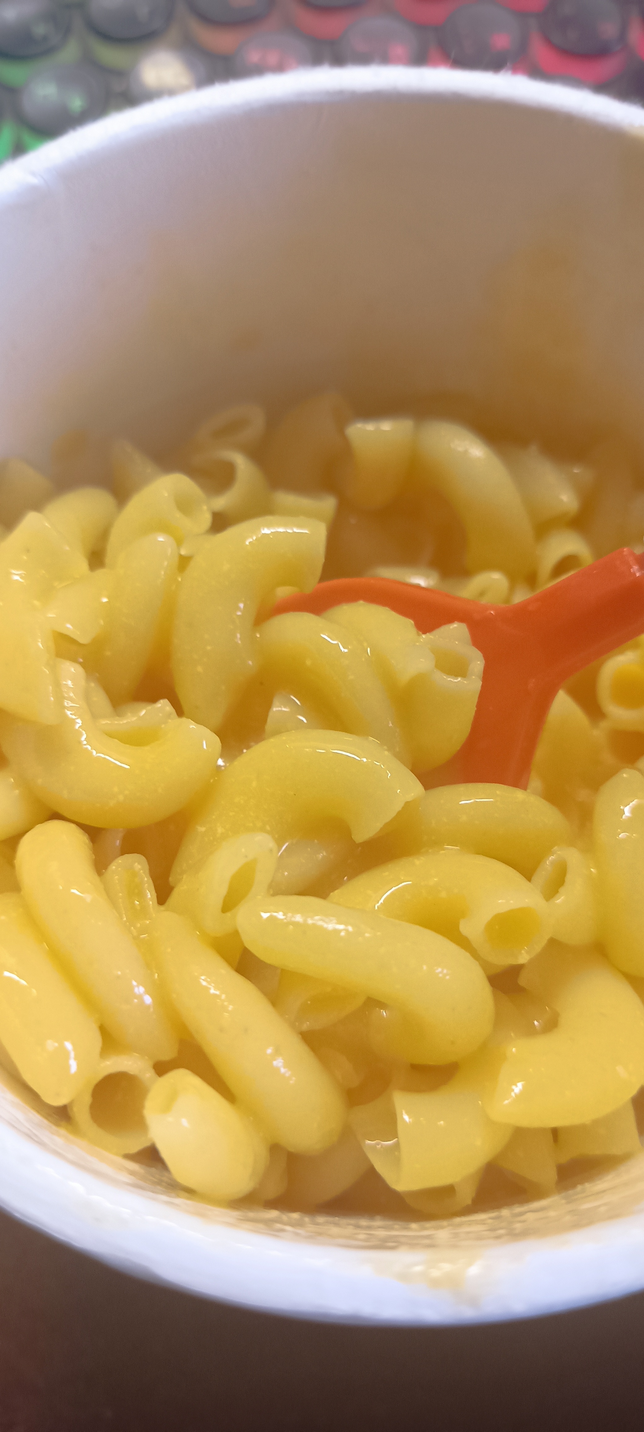 На выходе получаем ну ооочень сырные вкусные макароны мак энд чиз. Правда к самим макаронным изделиям вопросы. На текстуру они как самые дешманские наши. Но я списываю это на то что это регидрация готовых и что ты получаешь увесистый стакан макарон с сыром за 5 минут. вес готового продукта 327 грамм.