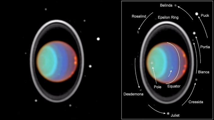 Каков самый интересный факт, который известен об Уране? Тот, что ось вращения этой планеты имеет наклон, не характерный для других планет Солнечной системы? Или что магнитное поле Урана смещено относительно центра планеты и заметно наклонено относительно её оси? Или то, что все спутники гиганта названы в честь персонажей произведений Шекспира или Александра Поупа?