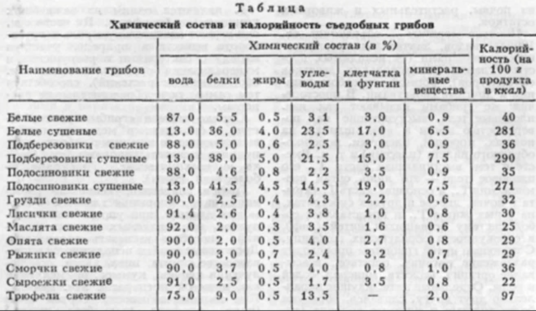 любой гриб на 90-95% состоит из воды и лишь оставшиеся 5-10% приходятся на «сухие вещества типа клетчатки, белков и различных микроэлементов.