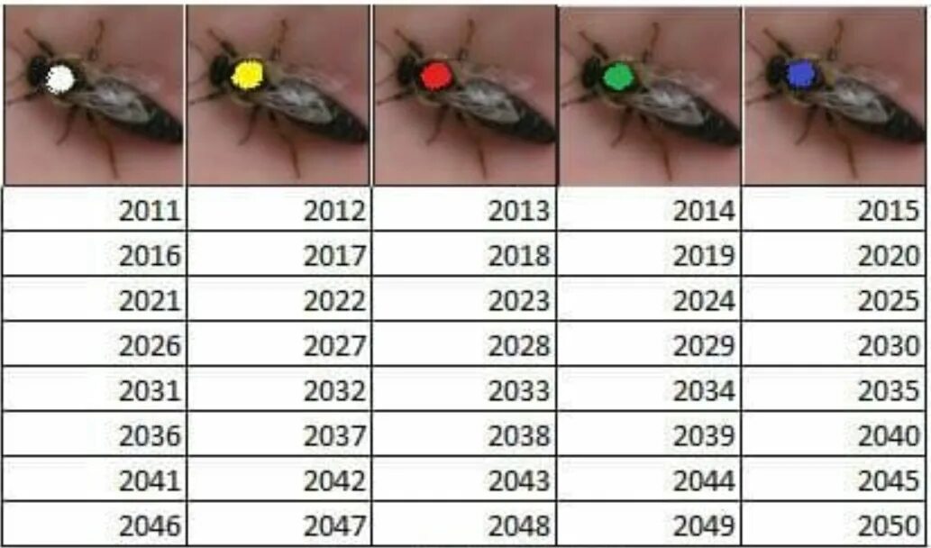 Для упорядочения определения возраста маток установлена международная система мечения, в которой применяется набор пяти цветов в следующем порядке: белый, желтый, красный, зеленый, голубой. В годы, имеющие на конце цифру 1 и 6, применяют краску белого цвета, в остальные годы – в указанном выше порядке. Для запоминания нужно помнить фразу: БеЖит Кот За Голубем.