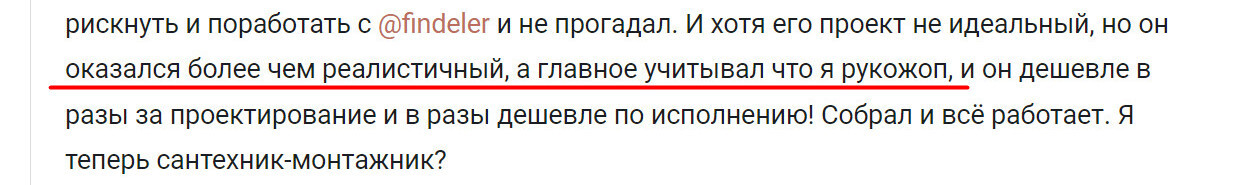 Вот поэтому разница в разы. И могу заметить в результате роста цен на строительство за последние годы эта разница всё растёт. Если лет пять назад проект той же системы отопления экономил от 50 тр. То сейчас разница 100-150 т.р. А на тех же фундаментах от двухсот тысяч.