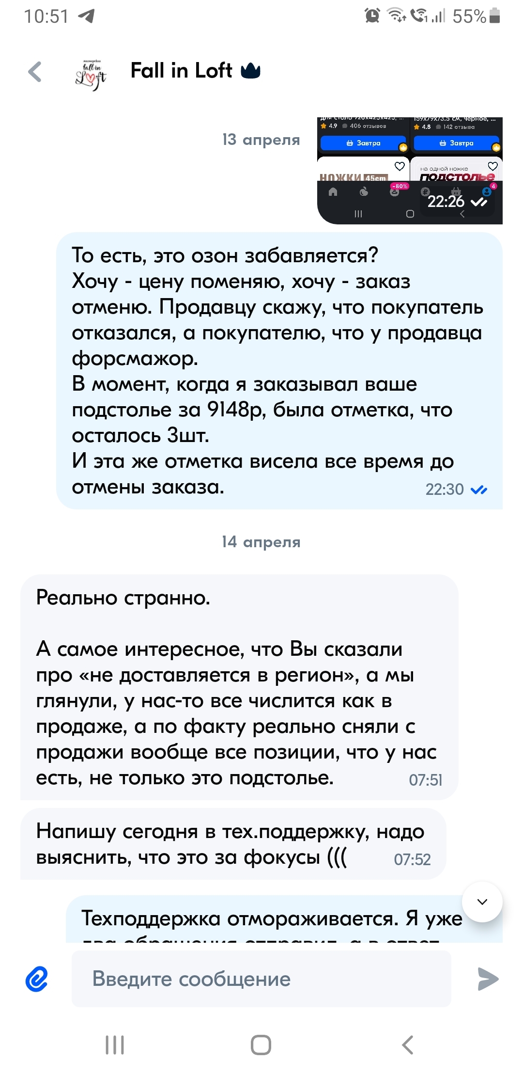 В чате с продавцом @Ozon не позволил передать ссылку на свой ответ в этом посте.