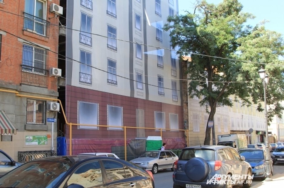 В Ростове-на-Дону к чемпионату мира по футболу жилые дома неприглядного вида завесили баннерами, имитирующими красивые фасады.