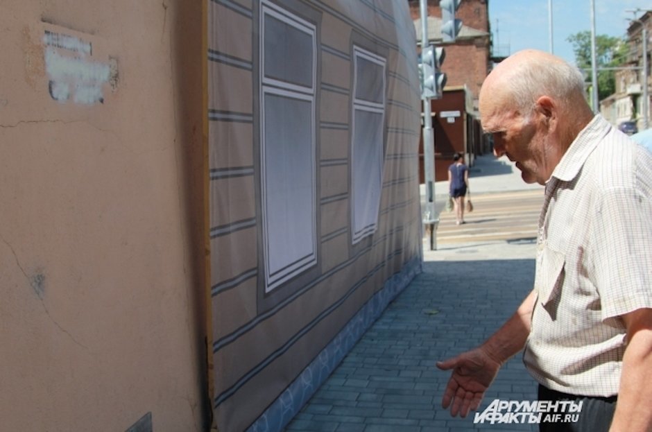 «Живу тут уже 67 лет и за это время ни разу никто не прикоснулся к дому, чтобы сделать его красивее. Перед началом чемпионата мира пришли строители, фотографировали, а потом поставили нас перед фактом, что из-за невзрачного фасада дом завесят баннером, чтобы, мол, иностранцы не видели обшарпанных стен, — рассказывает Григорий Палкин. — Баннер особо не мешает, но противно, что так показушно получилось».