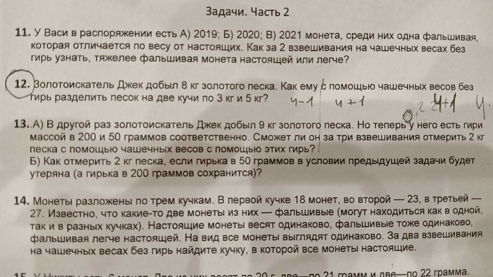 Если одна из чаш окажется легче — значит в этой кучке есть хотя бы одна фальшивая монета.