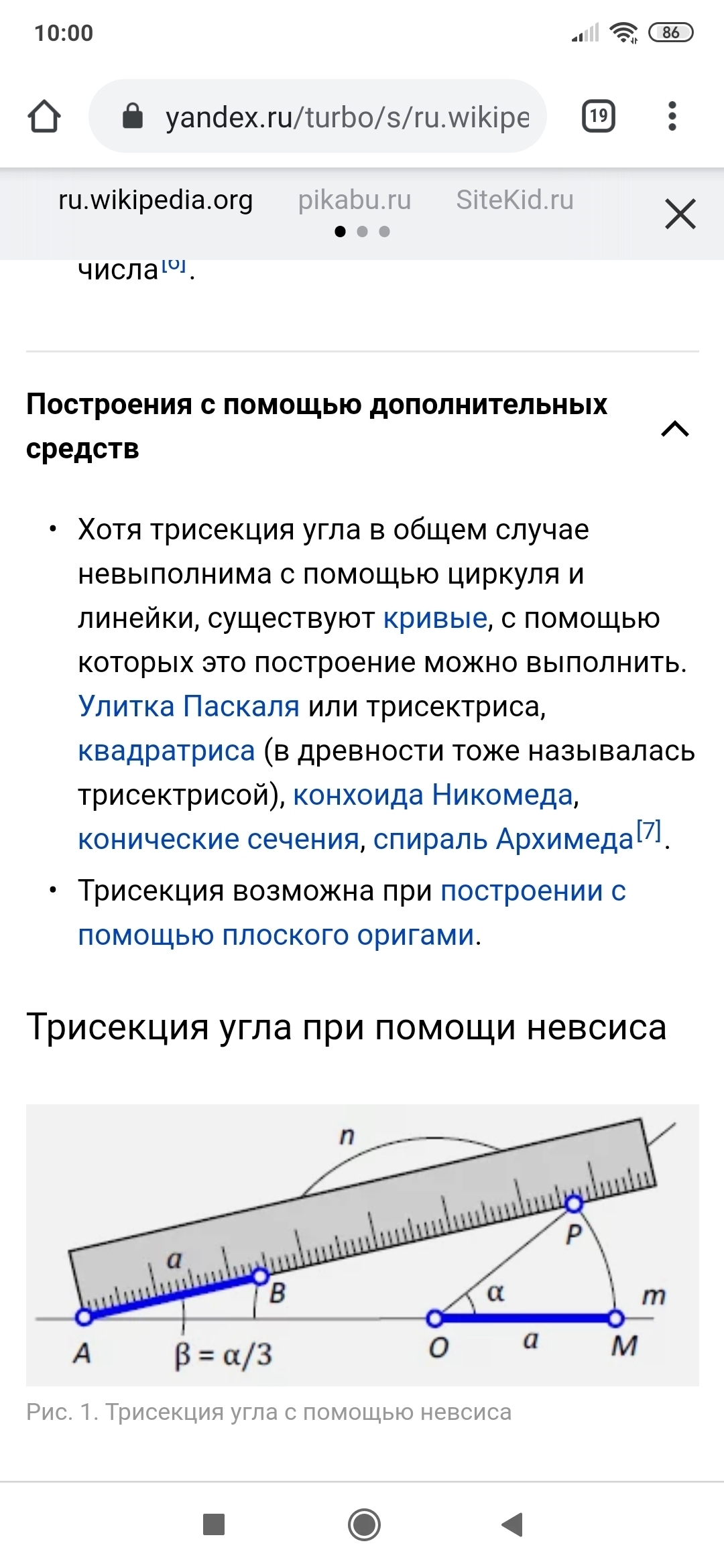Задача о трисекции угла из новости