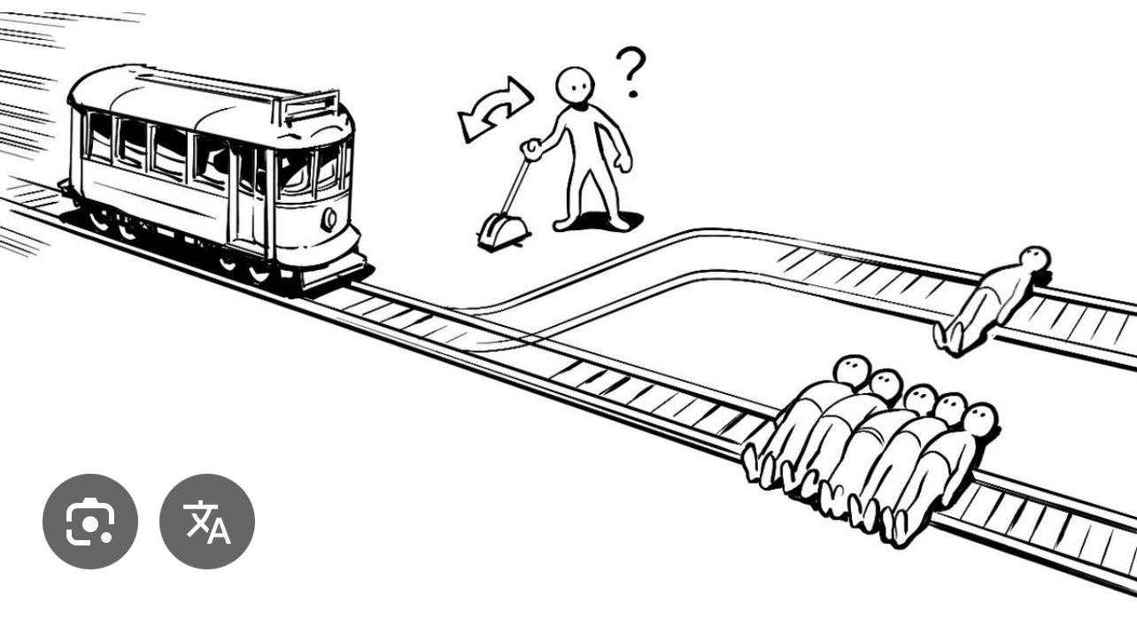 Рядом с тобой рычаг. Если ты его дернешь, вагонетка переедет на другой путь, где лежит только один человек.