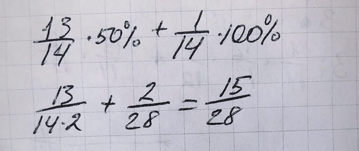 То есть в 13 из 14 случаев его убьют с вероятностью 50%. И в 1 из 14 - 100%.