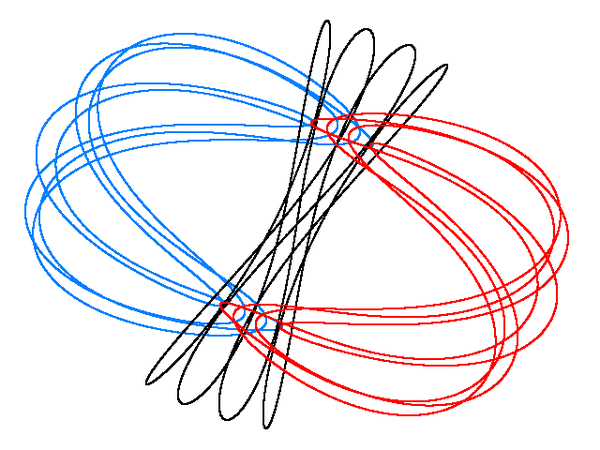 Пример орбиты-«восьмерки», открытой в 1993 году Муром: