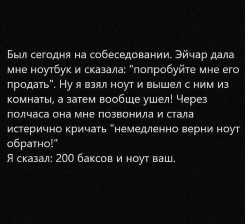 7307 adedas Юмор для всех и каждого Задание 1 год назад Юмор Собеседование Задание Находчивость Скриншот Отдел кадров Ноутбук Повтор 258 35 17 1 Ещё 0
