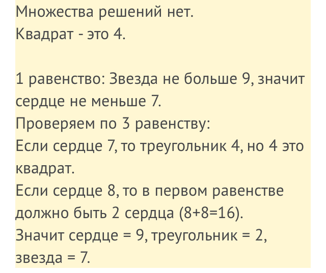 Если сердце 7, то треугольник 4, но 4 это квадрат.