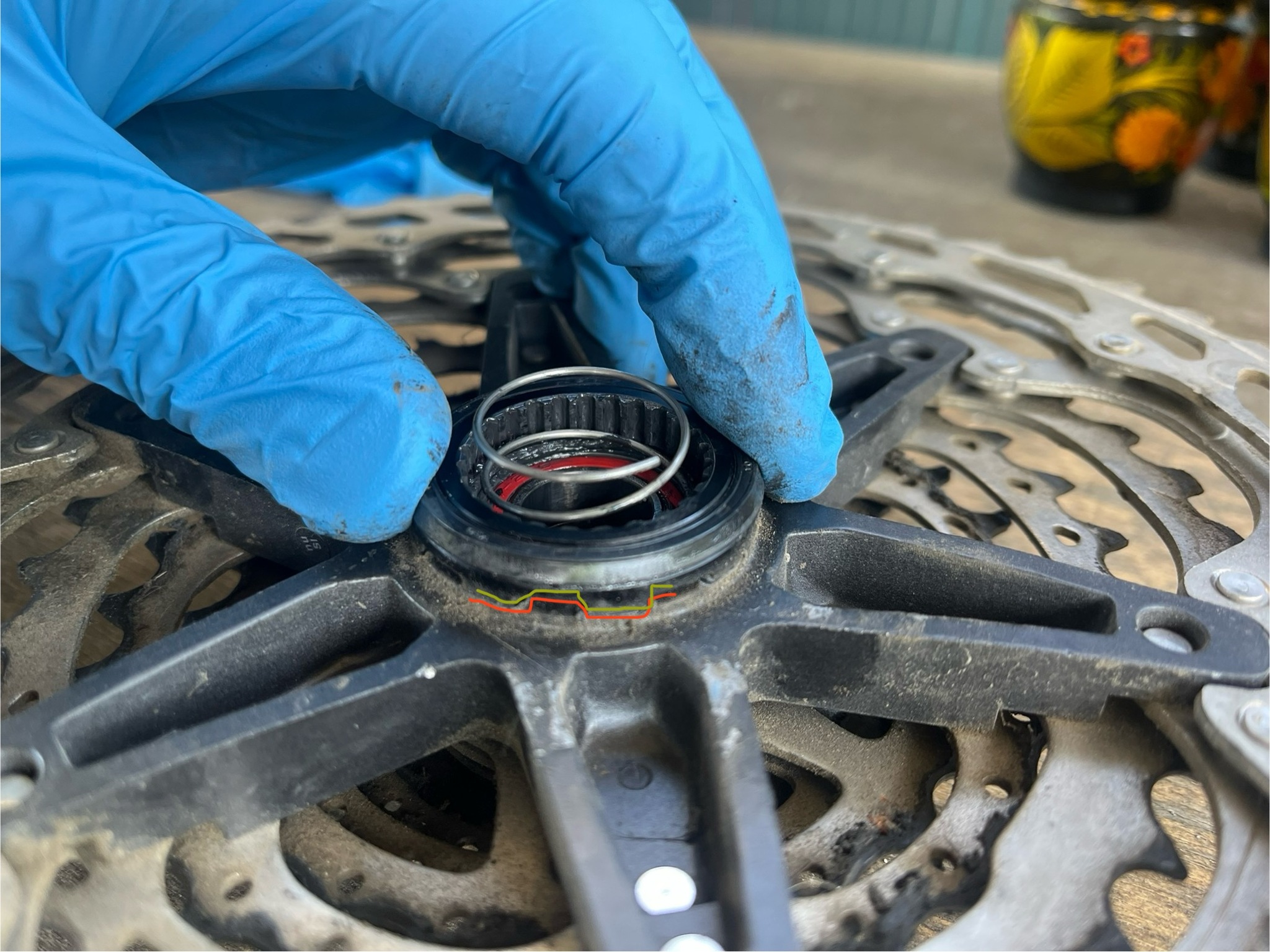 Всем привет. Задолбала уже задняя кассета(m5100) бряцать на высоких (мелких звездах) скоростях и на любых неровностях. Сегодня снял кассету, заметил небольшой люфт половины кассеты. Подскажите, как называется эта ?прокладка? которая встает в пазы с обратной стороны кассеты (на видео она люфтит в ответной части)?