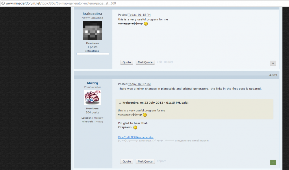 krakozebra 13 лет назад ЗадротоMine'крафтеры поймут. американский сайт minecraftforum.net Один наш соотечественник залил туда свою программу. Я[krakozebra]плюсанул... Общество