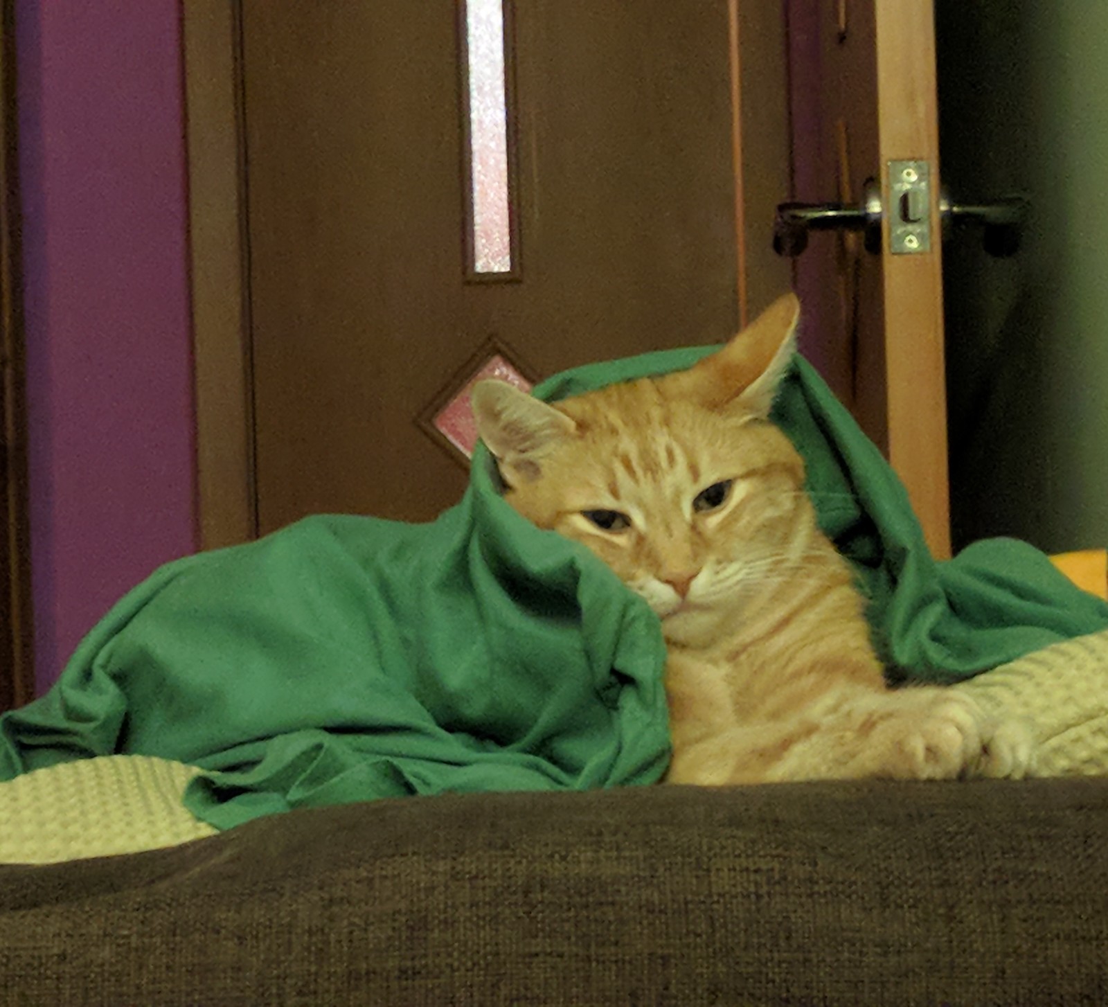 Так пледом его накройте!!! На фото-в комнате работала сплит система, кот постоянно уходил на кухню. А без кота-грустно. Стали укрывать, он снова стал спать в комнате.